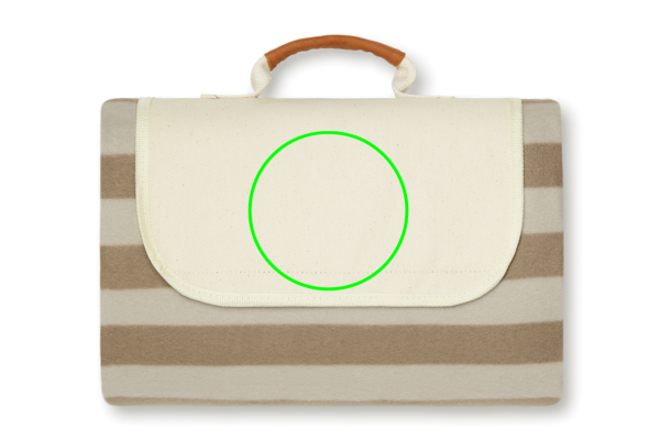 Одеяло за пикник от мек полар с памучно платно и детайли от изкуствена кожа. Поларът е изработен от 100% GRS сертифициран RPET. GRS сертификацията гарантира напълно удостоверена верига за доставки на рециклирани материали. Гърбът е изработен от PEVA, който отблъсква водата. Интелигентната конструкция го прави лесно за сгъване и носене. Общо рециклирано съдържание: 56% на базата на общото тегло на артикула. Размери: 170 x 130 x 0.5 см.
