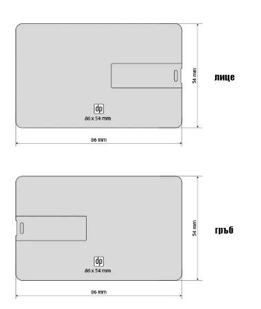 USB памет карта 2.0. Размери: 8.6 x 5.4 x 0.3 см. Капацитет от 8GB до 64GB.