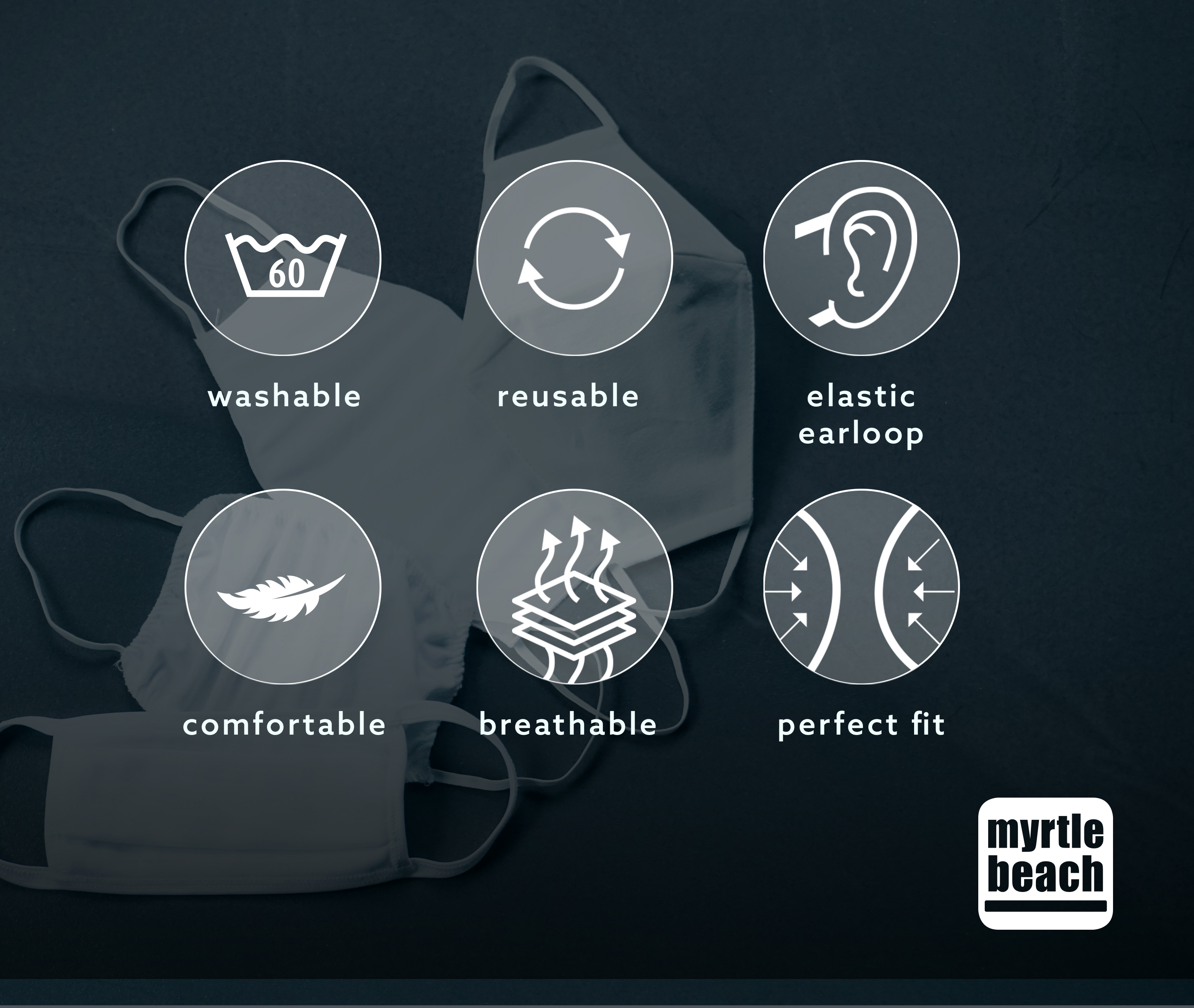Двупластова маска - един слой от памук и един от полиестер. Ластик за по-добро прилягане към формата на лицето. Може да се пере на 60°. Размери на продукта: 15.5 x 24 см. Не е медицинско изделие и не е защитно облекло.