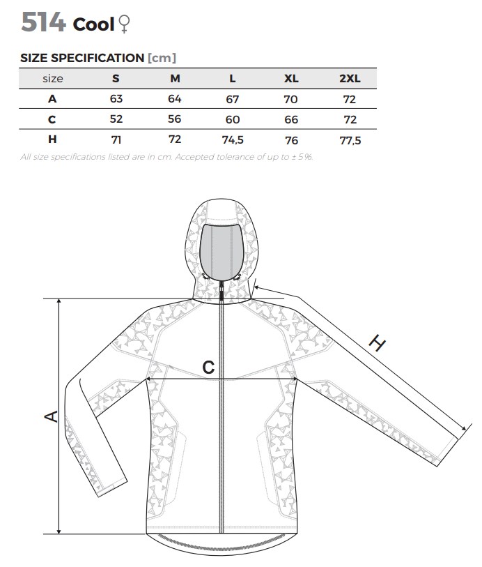 Дамско яке от трислоен softshell. Водоустойчива 5 000 mm и дишаща 2 000 g/m²/24 h материя. Два предни джоба и един на гърдите. Регулируеми маншети и светлоотразителни елементи.