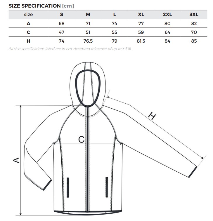 Еластична, бързосъхнеща материя. Идеално за спорт и свободно време. Права кройка с реглан ръкави. Джобове с цип. Леко удължена задна част. Контрастни елементи (с изключение на цвят 01).