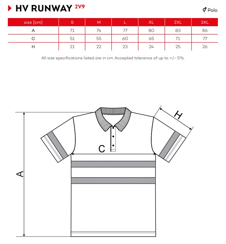 Сигнална тениска поло със светлоотразителни ленти. Отговаря на стандарти EN ISO 20 471 (class 2) и EN ISO 13 688.