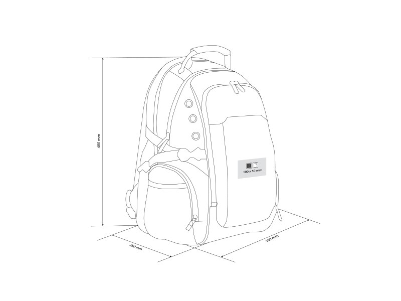 Раница с 3 основни отделения - подплатено отделение за лаптоп 15", отделение за таблет, преден джоб, два странични джоба от мрежа и два странични джоба с цип. USB конектор и конектор за слушалки, защитен джоб с цип на гърба. Размери на продукта: 48 x 36 x 26 см.