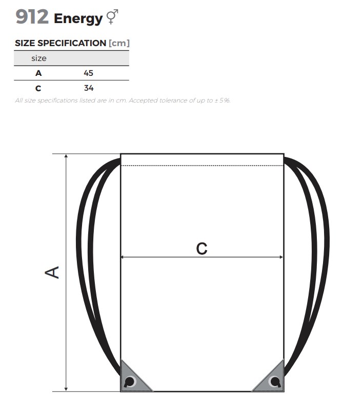Раница тип мешка със светлоотразителни елементи. Размери: 34 x 45 cm. Вътрешен джоб с цип с размери: 20 x 23 cm.