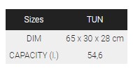 Двуцветен сак с двоен цип. Един преден джоб с цип. Подсилени дръжки и подвижна презрамка за носене през рамо. Размери: 65 x 30 x 28 см.