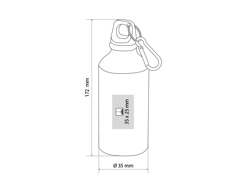 Спортна бутилка с карабинер. Вместимост: 400 мл. Размери на продукта: Ø 3.5 x 17.2 см.