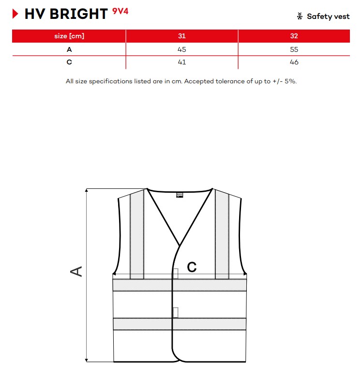 Сигнален елек със светлоотразителни ленти. Закопчеване с велкро. Отговаря на стандарти EN ISO 20 471 (class 2) и EN ISO 13 688.