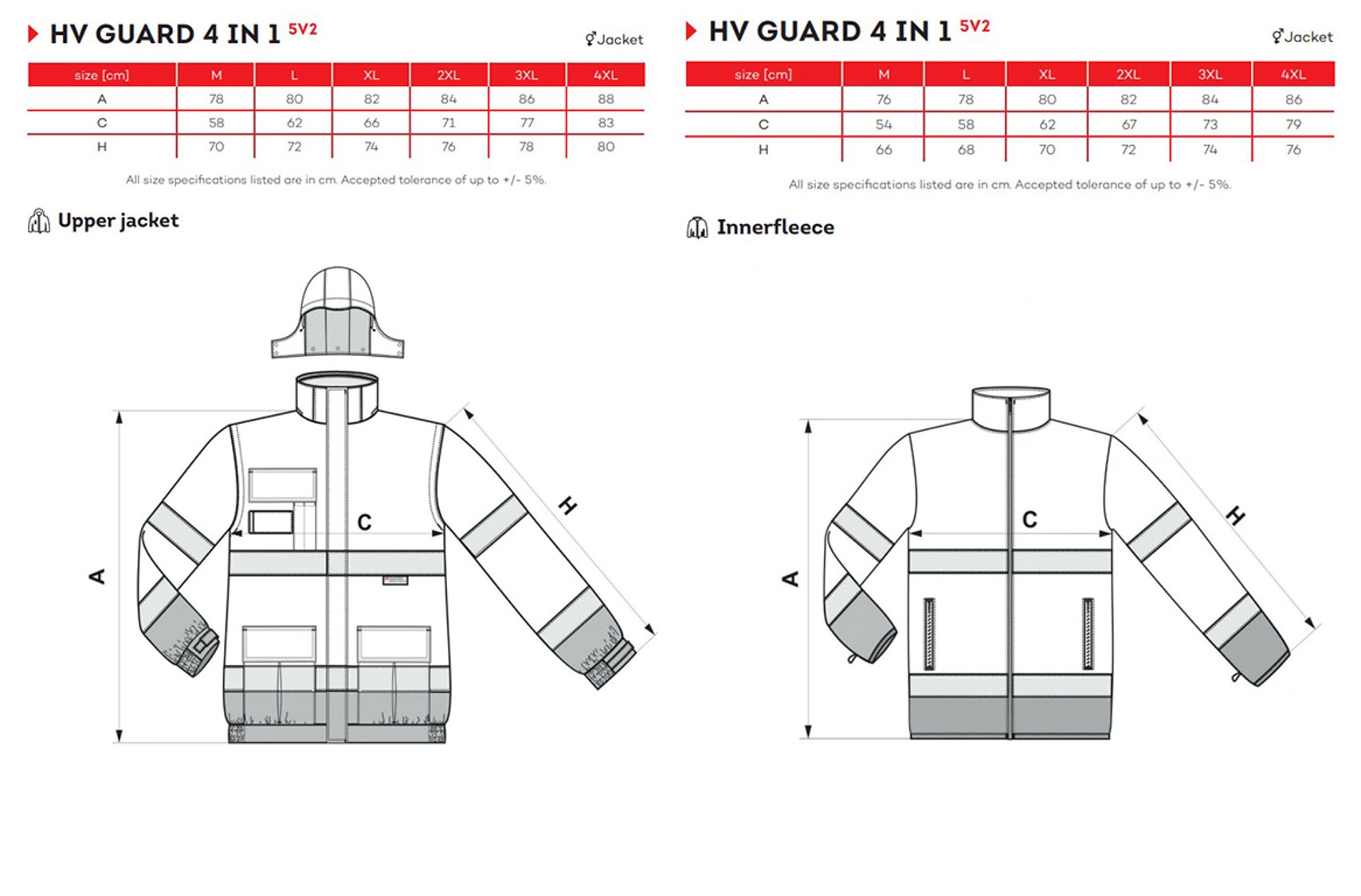 Сигнално яке със светлоотразителни ленти. Закрит цип. Водоустойчива дишща материя. Прибираща се качулка. Подвижни ръкави. Множество джобове с капаци. Отговоря на стандарти EN ISO 20 471 (class 3, 1), EN 343+A1 (class 3:1) и EN ISO 13 688. Вътрешно поларено яке в сигнален цвят. Светлоотразителни ленти , джобове с цип. Антипилинг материя. Отговаря на стандарти EN ISO 20 471 (class 2) и EN ISO 13 688.