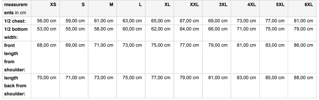 XS S M L XL XXL 3XL 4XL 5XL 6XL