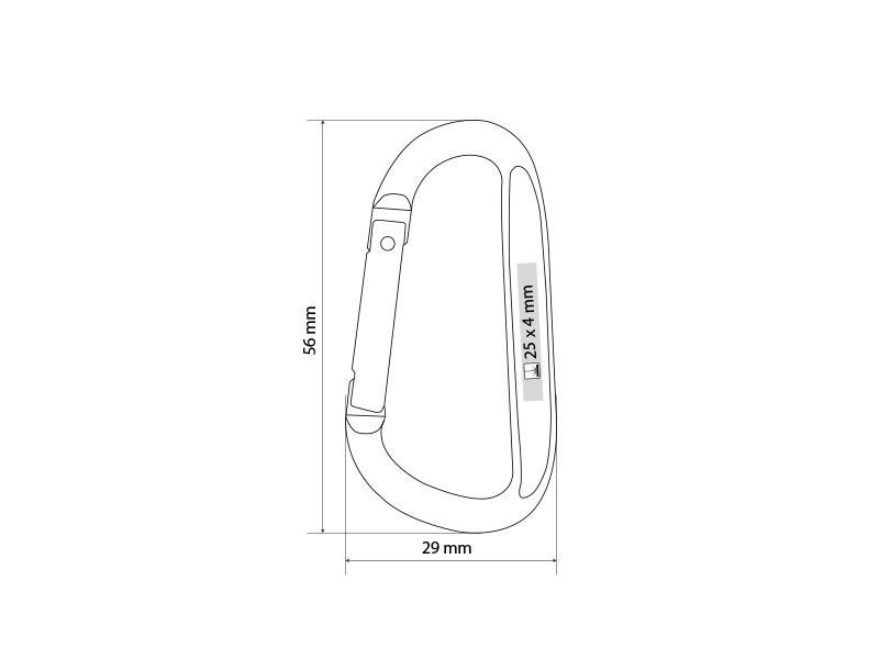 Алуминиев ключодържател с размери 5.6 x 2.9 x 0.5 см.