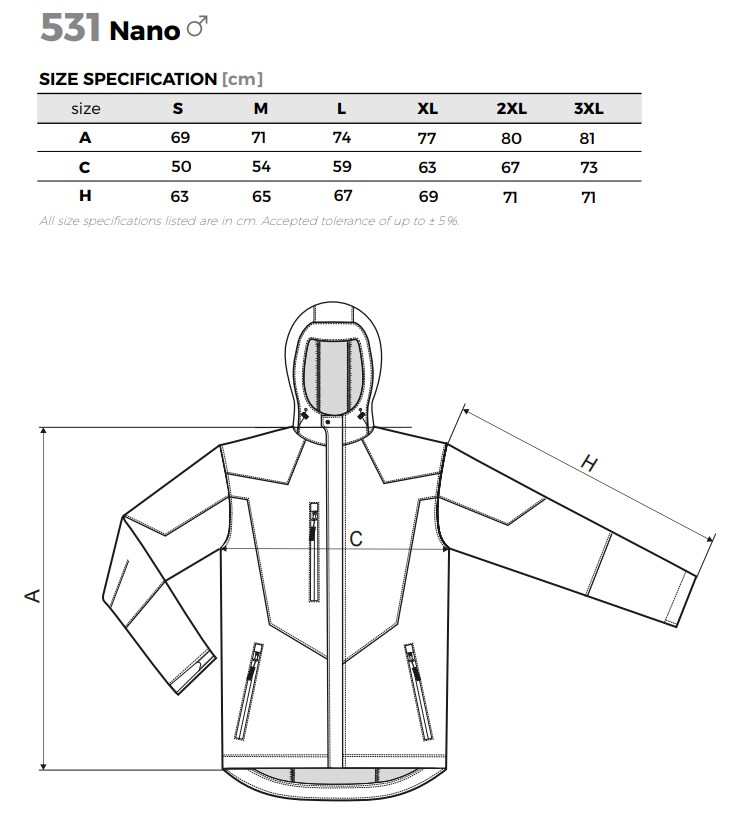 Мъжко яке от трислоен softshell. Водоустойчива 5 000 mm и дишаща 600 g/m²/24 h материя. Два предни джоба и един на гърдите.